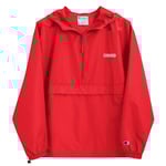 Protect yourself from the elements with this Champion packable jacket. This wind and rain resistant polyester jacket with a detailed embroidery design has a practical hood, front kangaroo pocket, and zipped pouch pocket which you can pull out and use to scrunch the jacket into for convenient storage.